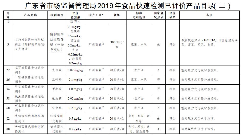 由广东省市场监督管理局组织广东省食品检验所开展的快速检测产品现场验证活动,于近日公布结果。开云网页版参与的克百威快速检测卡、甲萘威快速检测卡以啶虫脒快速检测卡等11种快检产品通过现场验证。