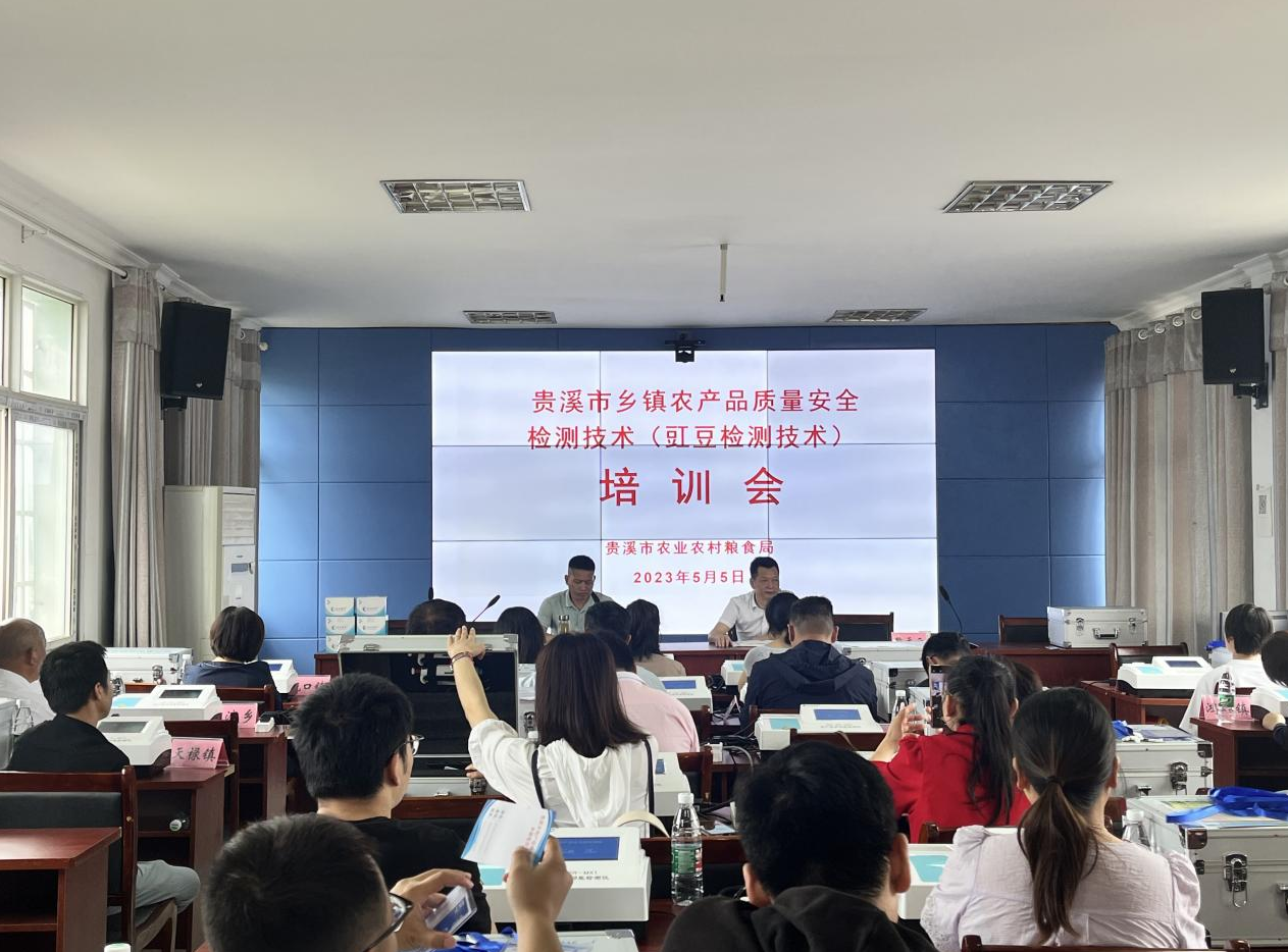 为不断提升农产品质量安全监管能力,锻造农产品质量安全快速检测过硬队伍,保障农产品质量安全。江西省鹰潭市贵溪市农业农村粮食局于2023年5月5日举办了“贵溪市乡镇农产品质量安全检测技术(豇豆检测技术)培训会”。贵溪市农粮局分管领导,贵溪市农粮局市场信息与农产品质量安全监管股领导及监管股各干事、开云网页版相关领导和同事以及贵溪市18个涉农乡镇及鹰潭市高新区白露街道办事处共40余名检测员参加本次培训会议。