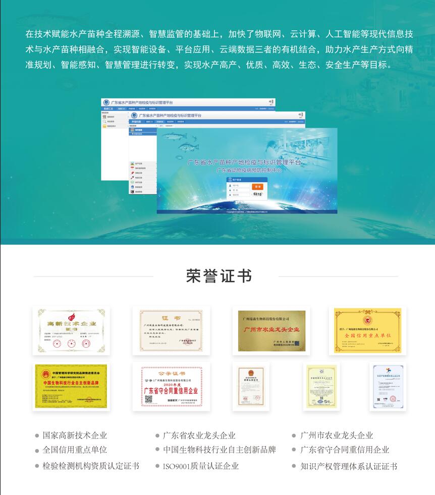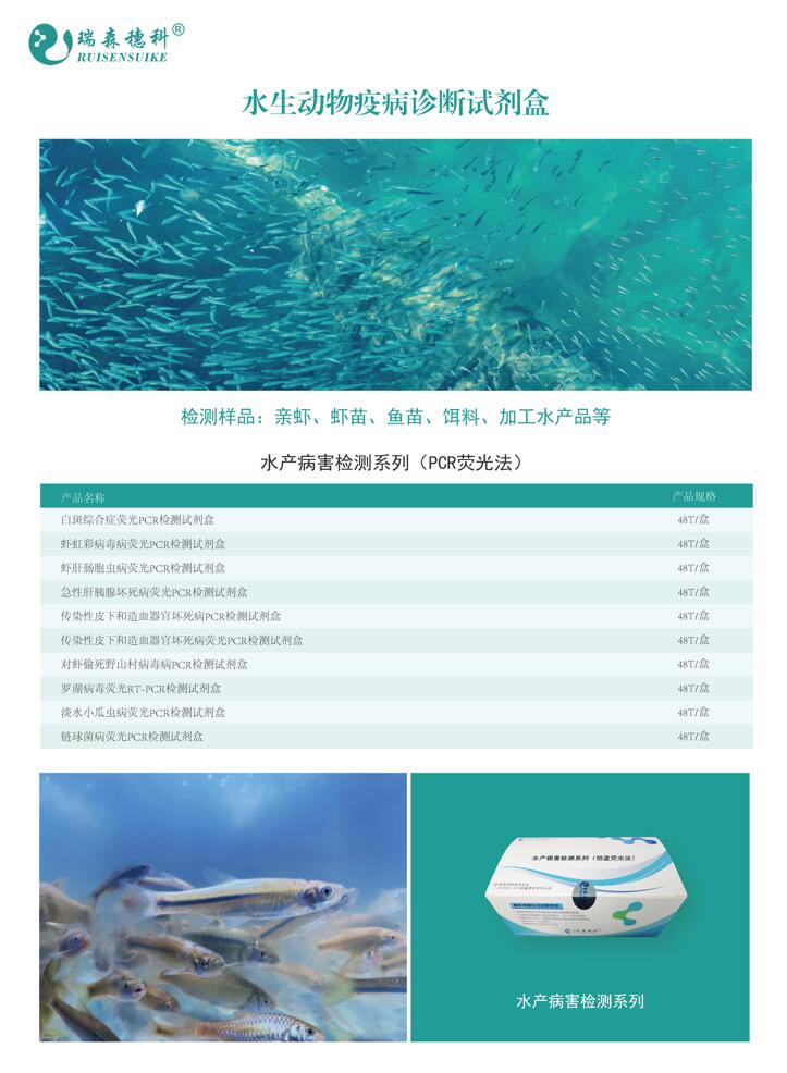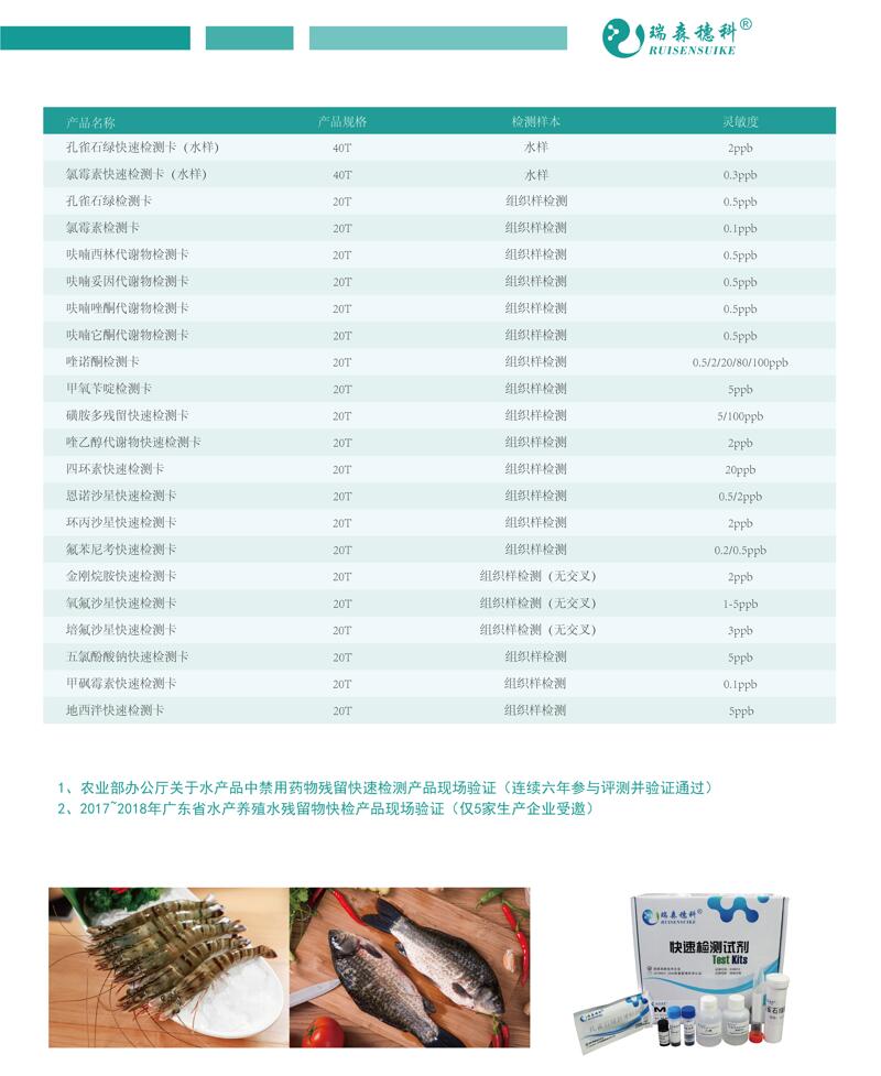 作为食品安全快检领域的深耕者之一,瑞森生物自创建以来,一直致力于用专业的技术与服务赋能助力我国水产品高质量发展。开发了系列针对水产品质量检测检疫试剂产品,同时更是开发出系列食用农产品质量安全风险预警与追溯信息产品,切实用实际行动响应国家政府的号召,为保障地方老百姓舌尖上的安全做出企业应有的贡献。