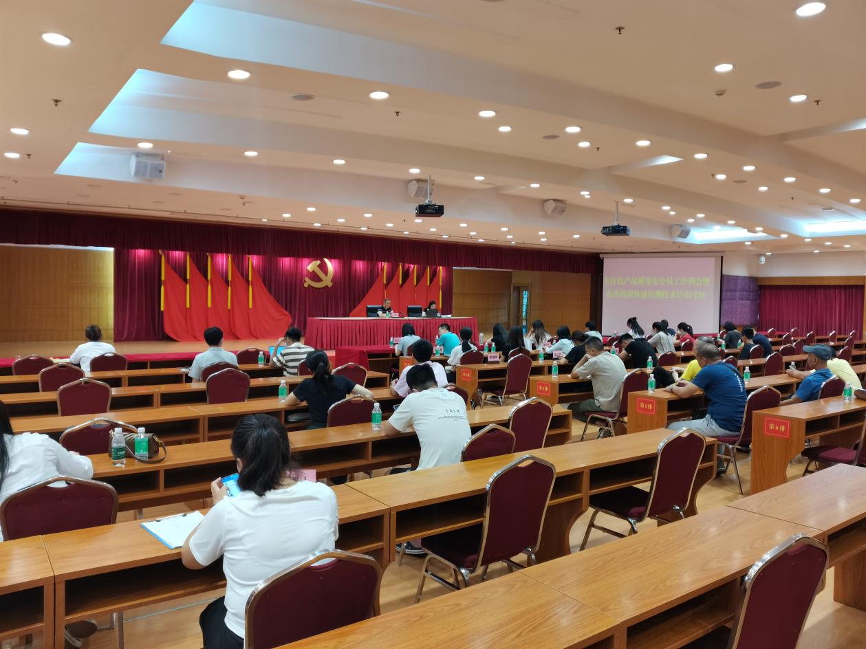 为强化广州市农产品质量安全监测体系建设,提升各级农产品质量安全监测机构的检测能力,切实保障产地农产品质量安全。2023年7月28日,”天河区农产品质量安全员工作例会暨农药残留快速检测技术培训考核会议“在天河区人民政府机关大院2号楼会议室召开。天河区农业农村局分管领导、全区各街道办全体专职农产品质量安全员及农业线口主要工作人员、全区各经济联社农业线口主要工作人员参与了本次培训会议。开云网页版技术培训同事受邀为本次培训班所有参训人员就“食用农产品快检技术介绍”课题做了培训,并取得良好效果。